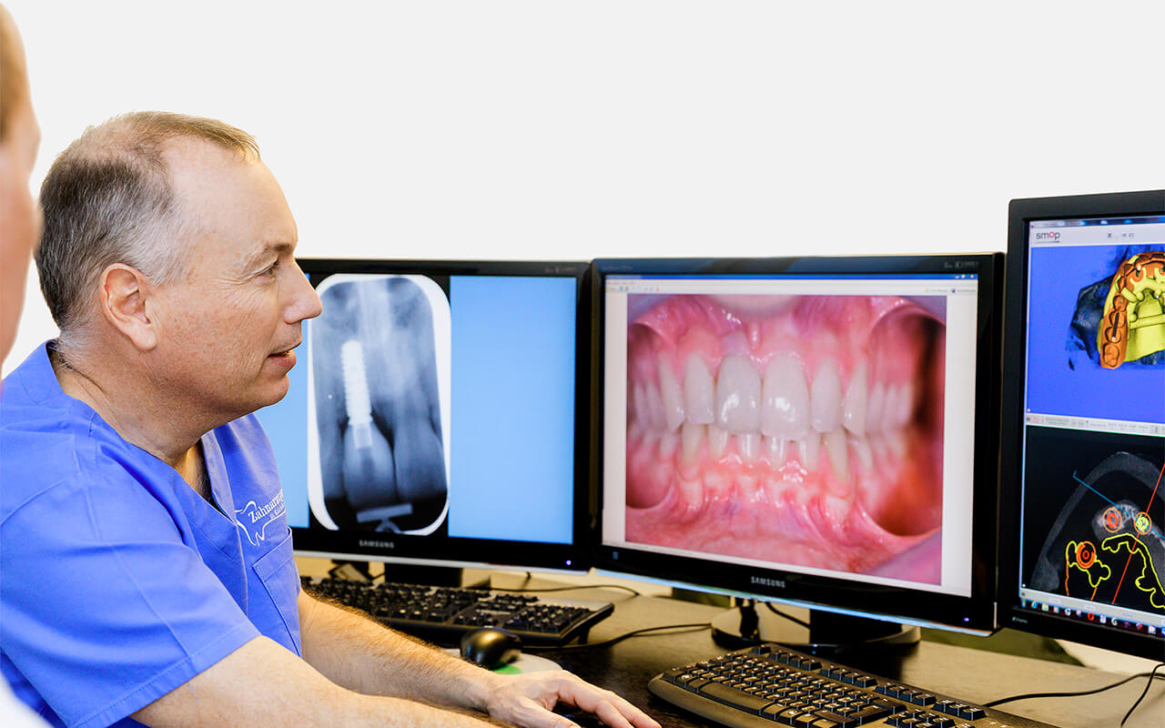 Durch die Verwendung von DVT-Scans und anderen innovativen Visualisierungs-Tools erfahren Patienten mehr darüber, wie genau ihre Zahnimplantate aussehen und wo sie positioniert werden. So sehen Sie das ästhetische Ergebnis der geführten Implantatchirurgie schon vor dem Eingriff.