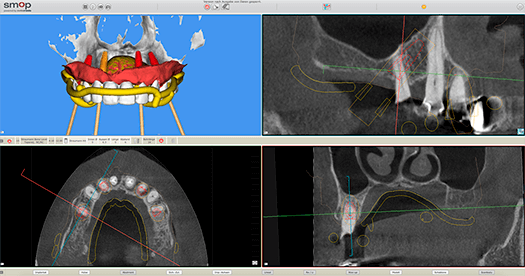Mit Hilfe der Planungssoftware und der digitalen Daten, kann der Zahnarzt die optimalsten Regionen im Kiefer für die Zahnimplantate lokalisieren. Dank der ausgefeilten Analysewerkzeuge lassen sich präzise Bohrschablonen für die Patienten entwickeln, wobei der höchste Patientenkomfort gewährleistet ist.